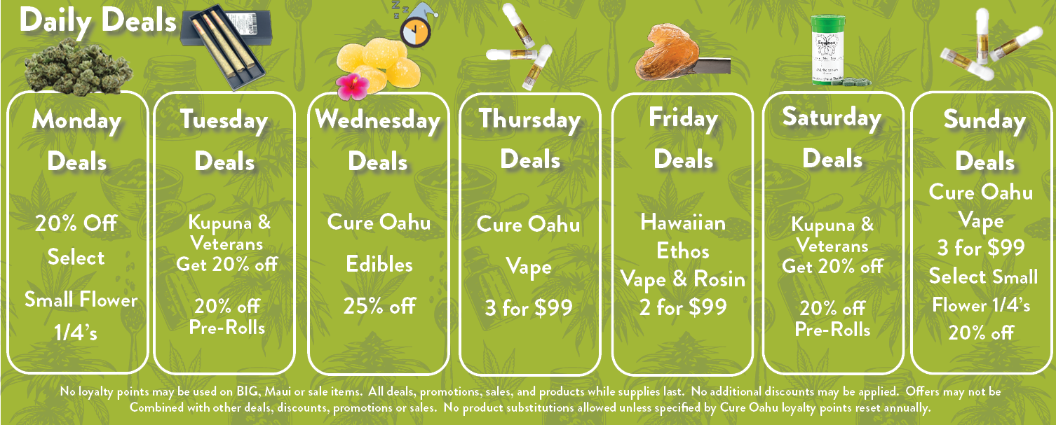 Join our loyalty program to receive Cure Oahu special offers, discounts and our monthly newsletter.